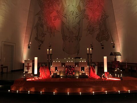 Katholische Kirche St. Georg, Wassenberg, Stiftplatz 5, geschmückt für eine Taizé-Gebet