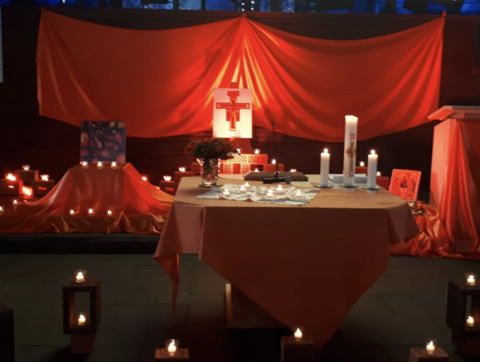Evangelische Kreuzkirche Wassenberg, Bergstraße 14, geschmückt für ein Taizé-Gebet